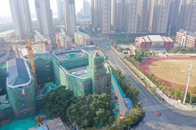 在龙师附小龙文分校二期工程施工现场可以看到,目前项目所有主体楼已全部封顶,进入室内外装修阶段,其中,图书艺术综合楼和教学楼的外墙抹灰部分已经做完,届时落架后,整所小学的外观就可以完整呈现。