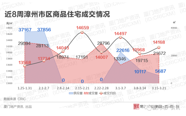 土拍过后,漳州市区楼市热度飙升,各案场成交捷报频发,或将在月底迎来集中备案,本周住宅成交面积2.17万㎡,环比上涨9.9%,受早期低价房源备案影响,均价小幅攀升至14168元/㎡,呈现量价齐升态势。