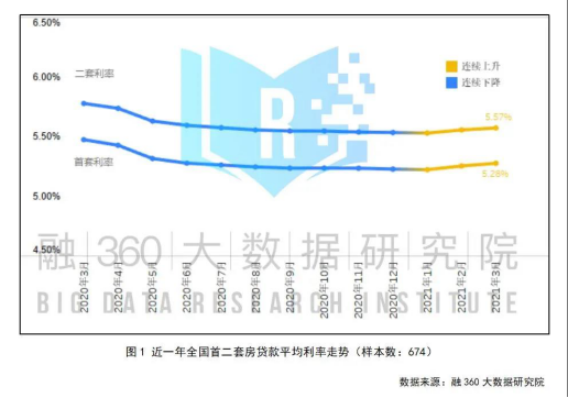 2021年3月(数据监测期为2021年2月20日-2021年3月18日):全国首套房贷款平均利率为5.28%,环比上涨2BP;二套房贷款平均利率为5.57%,环比上涨1BP。