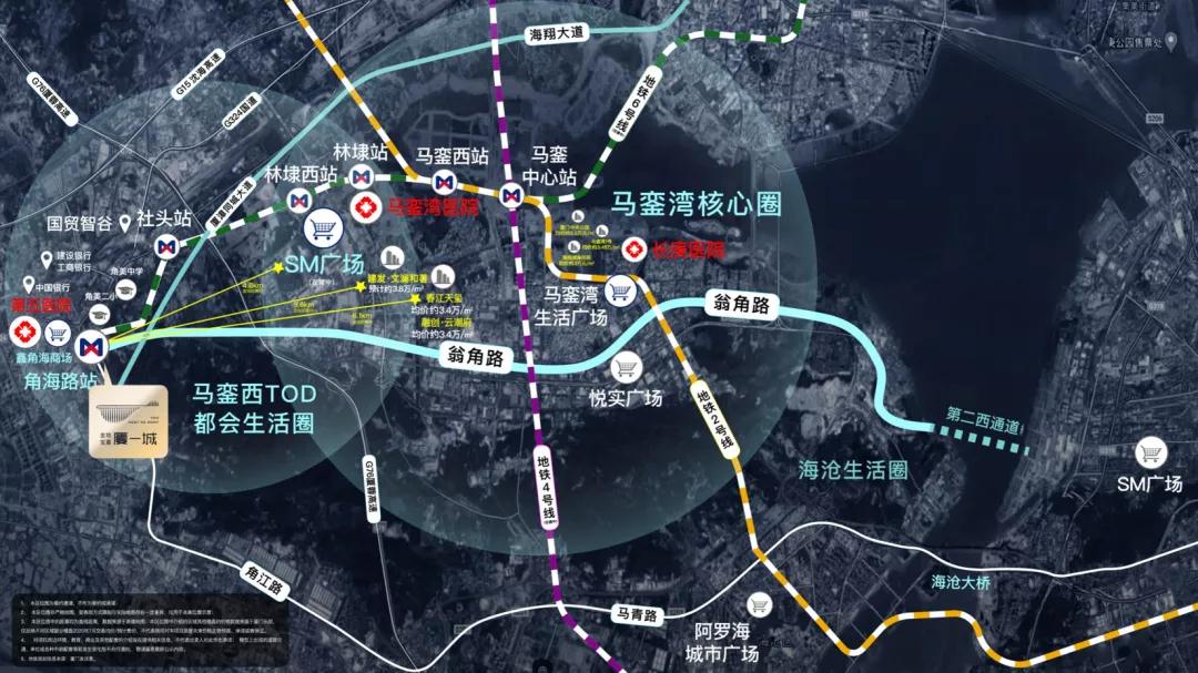 示意图中涉及地铁口、道路、sm广场、医院均为在建